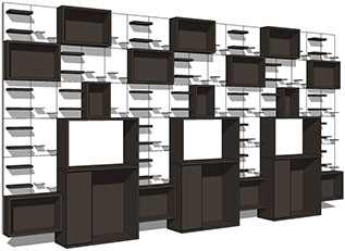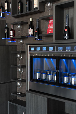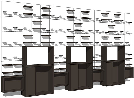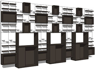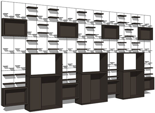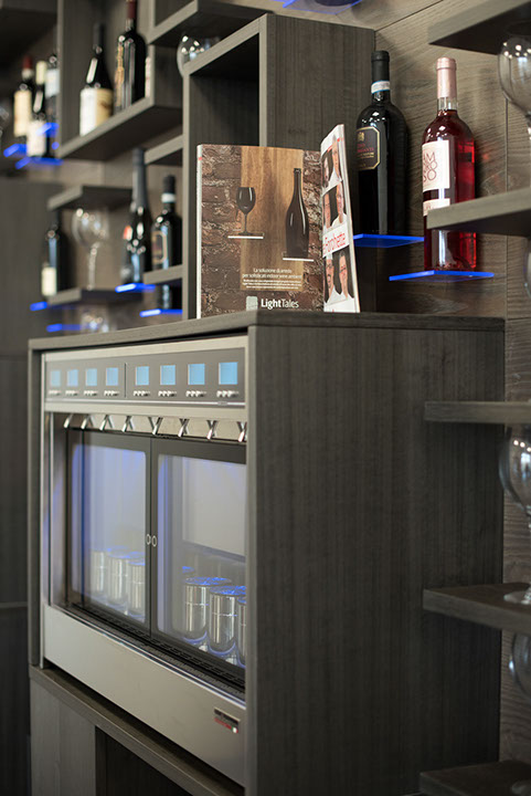 Sistema di arredo modulare dedicato al mondo Retail dalle linee essenziali e rigorose, concepito per creare uno spazio espositivo tematico al contempo versatile e raffinato. Il sistema modulare innova l’idea stessa di arredo potendo integrare al suo interno sistemi refrigeranti e wine dispensing system di ultima generazione che conferiscono funzionalità all’arredo. La possibilità di comporre la modularità con lamine di luce in funzione delle esigenze espositive degli oggetti caratterizza questa soluzione “chiavi in mano”, sempre personalizzabile.