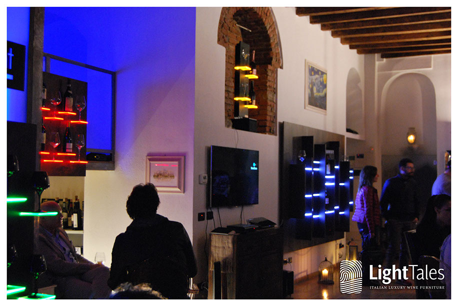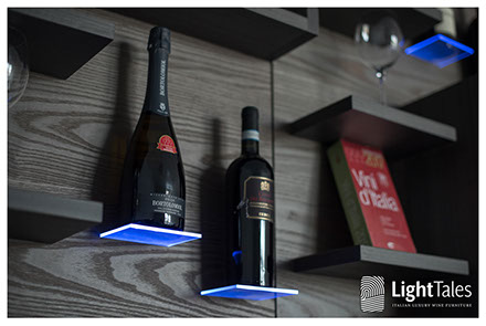 Turn-key modular furnishing system, conceived with the needs of the retail world in mind. This enables highly versatile display spaces to be created with refined design, and forming an integral part of refrigeration and wine dispensing systems, giving practical functionality to the furnishing. The add-on modular system enables wine display needs to be met as well as those of other display items. All can be blended in with lighting whose colouring can be customised.